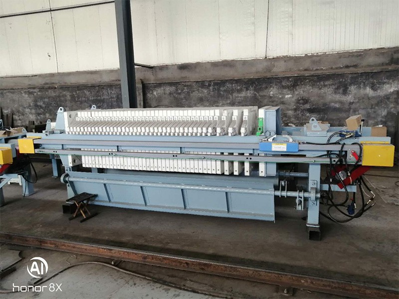 液壓壓緊板框式壓濾機由主機(機架和濾室)、液壓部件和電氣等部分組成。